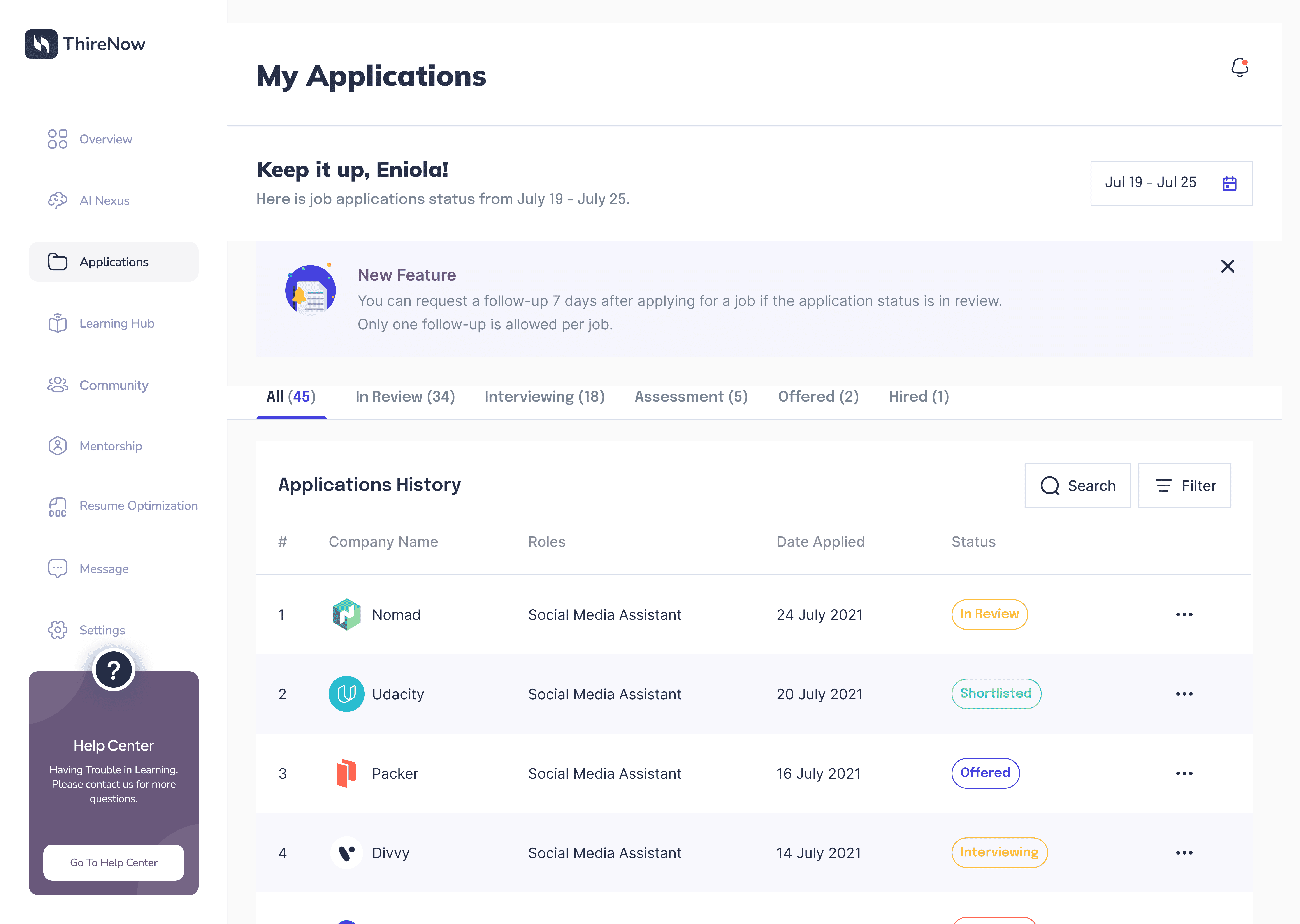 ThireNow is a career-launching platform that connects tech talent with remote job opportunities using AI-driven job matching, community resources, and personalized guidance. Available on both mobile and web, the product offers users tailored job recommendations, skill-building content, and an engaged peer network.